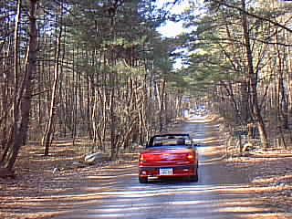 未だ春と言うには早いかもしれないと思うこの季節、幌を開けて走るとまばゆいばかりの太陽の光が我々を照らし出す。 オープンカーならではの、朝のキンと冷えた空気をかき分ける感覚を楽しみながら、赤松林を駆け抜ける。 |